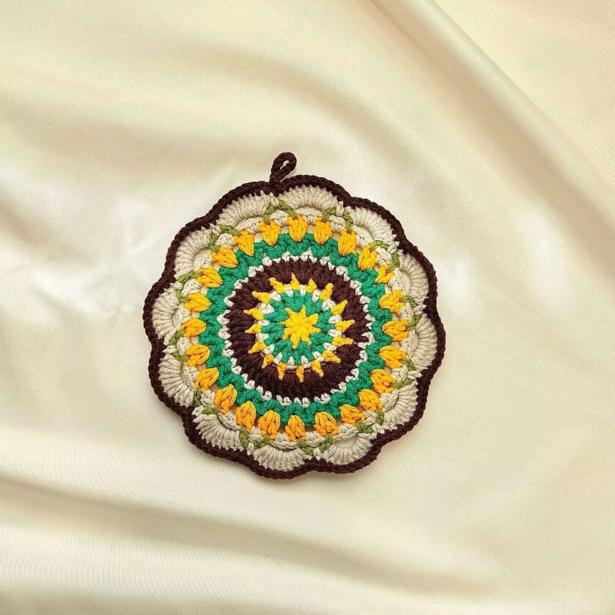 Whether you’re protecting your table from coffee rings or simply adding a pop of color to your decor, this coaster is both functional and decorative. It also makes a thoughtful, one-of-a-kind gift for housewarmings, birthdays, or anyone who appreciates handmade craftsmanship.